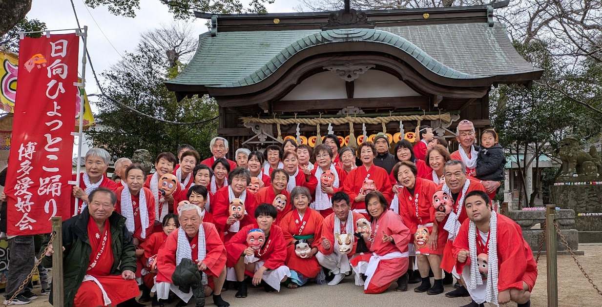 パパリンが所属する日向ひょっとこ踊り博多愛好会による奉納踊りが那珂川市にある現人(アラヒト)神社であり、見学してきました。