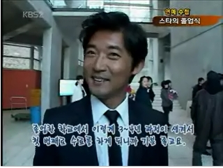 はい。ahnjaeukoさん。どうもです。見てきて~~卒業風景の動画上がりましたね。ワールド951番です。書き込み欄に文字中継されてますね。そして、ここから見て~~画面が出ます。画面の左の上に3つハングルでます。左から、高画質・標準・低画質 になります。高画質は、画面も大きく見やすいですが、動きが悪いです。標準で見た方が良いかと。。。2分45秒からです。素敵な笑顔のジェウクさんです。思い出は。。。結構な年齢の学生生活だったけど、その中でも、一番末っ子扱い。みなさんが、年上だったんでしょうね。面白かった。って、インタビューに答えてるみたいです。そうですね。この動画見ると、ベテランの俳優さんばかりですね。おほほぉ~ほんとに、可愛い後輩だったんでしょうね。そして、卒業できて、先生に感謝します。ってことですね。あぁ~いい笑顔 みなさん。こんばんは今日は、暖かい一日でしたが、どうでしたか上着はいらないくらいで、ポッカポカでも、体が痛くて。。。土曜日の練習が、、、そして、昨日は、むきになってやったのもいけなかったかなぁ。。。ふぅ。。。さあ~今回のDVDのセットで、要らないなぁ~~こんなの入れないで、安くして~~って思っていた大阪CDですが、これが、申し訳なかったが。。。良いよぉ車で、聞いてるのね。特に、リピし続けている『僕に君ほど』『因縁』。。。。。。良いメッチャ良い良い良い~~~~~東京では感じないけど、大阪の方が、より、楽しく歌ってるように聞こえる『僕に君ほど』そして、今ツボよぉ~~~~~~『因縁』...マシマン ナルカン~~って、サビの出だし。。。少し力入れて歌ってるのよ。ここよぉ~~あぁ~何が良いかわかんない。。。でも、とても感じます。大阪の方が、強い感じがする。うん。お馬鹿オギは、ドッキドキ。。。ここだけリピしたいくらい。。ふぅ。。。切ない歌詞なのよね。思いを込めて歌ってるかと思うと。。。たまらんよぉ~~私も目をつむって歌ちゃいそう~~でも危ないぞぉ~~運転中さぁ~~向こうから見たら、馬鹿顔でしょうね。このおばさん何熱唱してるぅ~~~~アハハ~~でも、車の中は自由よぉ~~今は寒いし、窓開けることないからね。。うふふぅ。。。こんないらないと思っていたCD楽しませてもらってます。感激よぉ~~ つまらないアップでごめんなさい。今日は、あちらこちが痛い。。。今感じてる事書いて見ました。。。皆さんもツボ~~あるかしら さあ~明日は、黒びかりジェウクさんの輝かしいお姿大公開タキシードだよね中のシャツに期待おっと~~何楽しみにしてましょうね。
