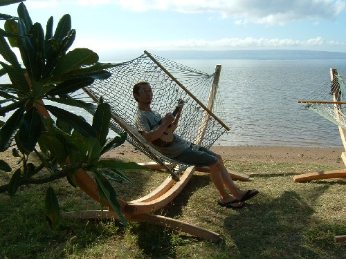 夢で君に会ったよ僕らは手を取りあって歩いていたよハワイの白い砂浜で・・・僕らは太陽の下遊んでいたよそれはもう楽しくてさハワイの白い砂浜で・・・ White Sandy Beachより(訳:OHANAマスター) ウクレレ片手にのんびりハワイ・・・ ・・・ピース&アロハ
