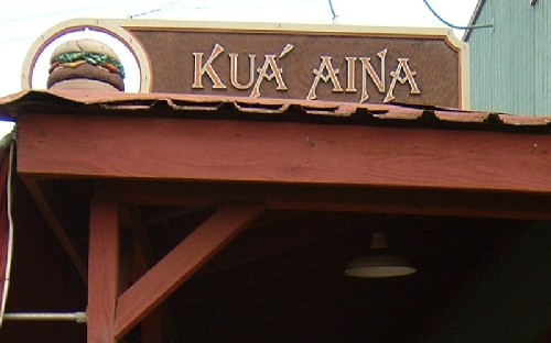 初めてハワイに行ったのが7年前かな?年末年始の休みに旅行に行きたくなってやっととれたのがハワイ・・・今ではハワイ大好きですが実はハワイ以外の海外も結構行ってたんですよ・・・なので最初は・・・「あの年末年始に芸能人が押しかけたり日本人だらけのハワイ?」ってちょっと馬鹿にしてました・・・ほんと上っ面だけで見てました・・・ゴメンね・・・ハワイ・・・今では大好きだよ!で。まぁ初めてのハワイ。着いてすぐ、まずトロリーバスに乗りましてね。「乗客全員日本人じゃん・・・なんか恥ずかしいじゃん・・・」なんて思ってるうちにアラモアナSCに着きまして・・・(今と違って山側にトロリー乗り場がありましたね)そしたら日本人全員降りちゃうじゃないですか!?日本人全員って僕ら以外全員なんですけど(笑)そしたら運転手が・・・「アラモアナセンター!・・・アラモアナセンターだよ?・・・降りないの?」って・・・実はアラモアナセンター知りませんでした(笑)「なんで日本人はココでみんな降りるのかな? 全員同じとこで降りるなんてなんかおかしくない?」って思ってました・・・で。運転手。「どこに行くの?」って・・・「クアアイナってハンバーガー屋」って答えたら・・・「おーー!クアアイナ!ナイス!あそこは美味いよ~♪よ~し!着いたら教えるよ!」ってなんか張り切っちゃってね。他の客が乗って出発しても「クアアイナ~♪サンドウィッチ~♪美味い美味い♪」なんてご機嫌で歌って(笑)「次は~ワードセンター。クアアイナ・サンドウィッチ前~♪」「帰りも迎えに来るよ~♪」って(笑)このとき初めて「なんかいいな・・・ハワイ」って思いました。。。こちらは昔のハレイワのクアアイナの看板。今のグラス・スカート・グリルの場所です。