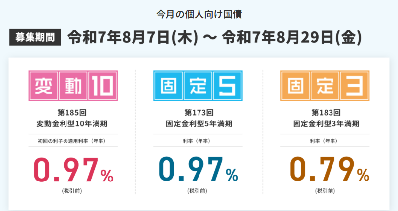 8月募集の個人向け国債の利率が公表されました変動10年でも前月比+0.01%です