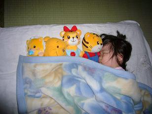 3時過ぎて、突然とでビックリその前に出かける用事を済ませていてよかった今日は、はるちゃん、お昼寝しないかと思ったけど、3時のおやつを食べた後「はるな、ちょっと寝るからお布団敷いて~。」と言い出したはるちゃん、私が言うのもなんですがママと寝るのが大好き私も、今だけだろうし母親の醍醐味だわと、子供とお布団に入るのは楽しみだったりしてが、今日はほかにライバルが、、、し、しかも、4人も。。。私は布団の端に追いやられ、しかも、ママのかぶっていた毛布、引っ張っていって、「ちゃんとみんなに掛けてあげないとダメでしょ」優しいじゃないのォ~って、ママのはなくなっちゃったじゃないのっま、いっかその後、1分後にはスヤスヤ寝息たてて寝ておりましたおやすみ小さなお母さんこれを書いている間も、ももすごいまま。。。う~ん、そろそろ起こさなくっちゃ