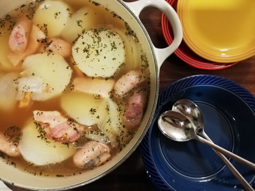 こんばんは。今日みたいに寒い日は大きめに切った大根、玉ねぎベーコン、ソーセージをたっぷり煮込んだポトフを(いつもジャガイモやズッキーニ、セロリなどなど、冷蔵庫に余った野菜を入れてます。)††作り方は簡単††鍋にお湯を沸かし大根だけ先に火が通るまでゆでたら残りの材料ぜーんぶ全部ル・クルーゼに入れて煮るだけ ビーフコンソメを2粒いれて塩で味をととのえる。†††††ちなみに、我が家は24㎝を買いました。お店で実際持ってみたら重い。。自分が毎回洗い物で嫌がらず洗える重さが24㎝までかな~と思ってサイズ決めました。家族4人、ポトフなら十分な大きさ。おでんは、さすがに4人分には小さいからだいこんやジャガイモなど野菜だけ最初に沢山煮て練り物は、無くなったら次の日たしたりしてます。†††彩りのある食卓を†††周りの色を取り込む美しい鏡面ステンレス†††††††††