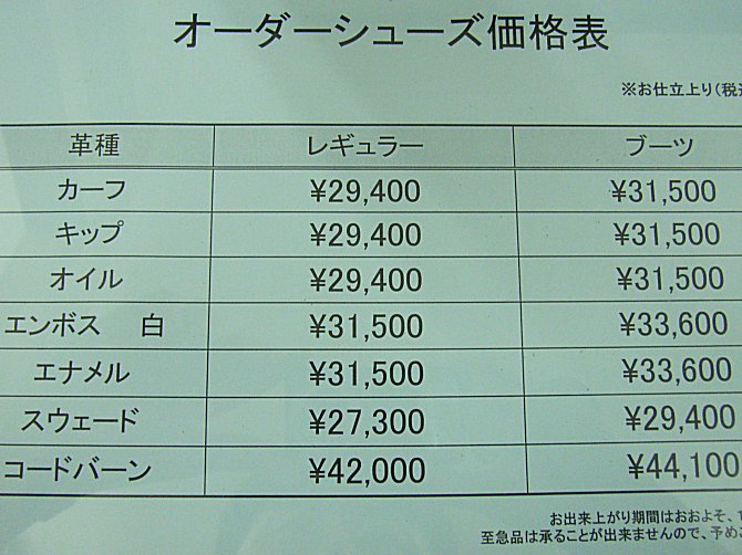花菱は一部の店舗に限られますがオーダーシューズも扱っています残念ながら楽天店では扱っていませんので、気になる方は実店舗でどうぞ。私は昨年5足注文しました。安くて履き心地が良かったので。花菱で扱っているオーダーシューズは、パターンオーダーになりますので、102種類の基本サイズの中から、実際に履いてサイズを確認します。そして、全体的なデザインをESタイプとCSタイプの中から選びます。次に革を選ぶのですが、デザインによっては、例えばこんな感じや、こんな感じにパーツ毎に革を変える事も可能です。パターンオーダーとはいえ、色々とデザインを指定出来ますので、楽しいですよ。詳しくは、こちらを御覧下さい。この靴は、革底が削れても3回以上取替え可能なグッドイヤーウェルト製法です。たった3万円程度で、自分の足に合うサイズと自分好みのデザインの靴が手に入るなんて、とってもお得な感じがします。オーダーシューズなので、ココが当る等の相談をすると、適切に対応して頂けます。靴が痛んだ時も、製造元にて街の修理屋よりも安価に直して頂けます。注文は、サンプルシューズを試し履きする都合上、取扱店の札幌店、仙台店、岩槻加倉店、山形店、新前橋店に行く必要がありますが、1度注文してサイズが分かっている方ならば、他店でも取り次ぎして頂けます。詳しくは、取扱店舗にお尋ね下さい。ちなみに、花菱は、靴屋ではなくスーツ屋なので、靴の知識は専門店には敵いません。オーダーシューズの販売取次ぎ店と理解して、過剰な期待はしないのが無難です。