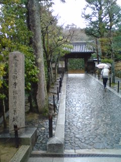 壬生寺の次はどこに行くか・・・。もう地図みても行こうとしているところって全然近くなくって別の場所なんだもん。とりあえず市バスフリーパス500円を買って来たバスに乗ることにしました。というわけで「銀閣寺」行きのバスに乗りました。ああ~寒い。銀閣寺は正確には「東山慈照寺」といいます。バス停から15分歩くのがきつい。雨の降ってきちゃったし。入り口ちょっと雨な感じが風情ありますね~ →良かったらクリックお願いします♪「目指せ!幸せなお金持ち生活♪」トップページへ