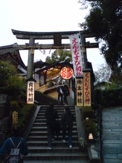 まだまだ京都日記、引っ張りますよっ!!しかもそのあとに奈良日記もあります・・。清水の舞台を出たところすぐに見つけた神社。地主神社 じしゅじんじゃ といいます。うわ~っ、こんなところにあったのね!!やっと会えたね・・・(辻仁成さんが中山美穂さんに初めて会ったときに言ったセリフと同じだわ・・・)実はこの神社に小学校の時から来て見たかったんです。やっと出会えました!!なぜかというと小・中と読んでいたMy Birthday という雑誌(今は休刊だそうですが・・・)の後ろの方にいつも「縁結びの神様」ということで広告が載っていたんです。当時はおまじないとか占いとか大好きだったので初恋の子と両想いになりたい~ここの神社に行きたい~って真剣に思っていました。まあ小学生なので両想いになったところでどうしようもないんですけどね。そして興味あったのがコレ。もう一つの石まで目を閉じて無事にいければ思いが叶うというものですがなんせ人が多くってとてもじゃないけど出来ませんでした・・・。おかげ明神一つだけならお願いが叶うそうです。なんとこの裏には丑の刻参りの釘のあとがあるんですよ~。これは「なで大国」さま。芸事上達の神様と大国様がまつってあります。大国様はなでる箇所によって「良縁」「商売繁盛」・・・などご利益がいただけるそうです。欲張りなので全身撫で回して参りました、てへっ。やっぱり女の子がたくさんいるわ~。ここでは通信販売でご祈願やお札やお守りの送付もしてくれるそうなので遠方の方はぜひどうぞ。離婚して現在シングルの友達に良縁に恵まれるお守りを買いました。 →良かったらクリックお願いします♪「目指せ!幸せなお金持ち生活♪」トップページへ