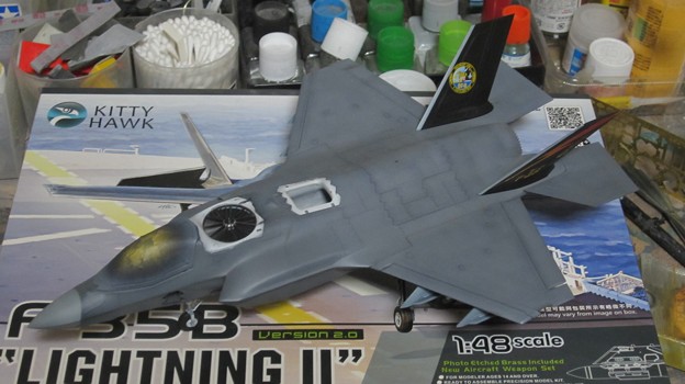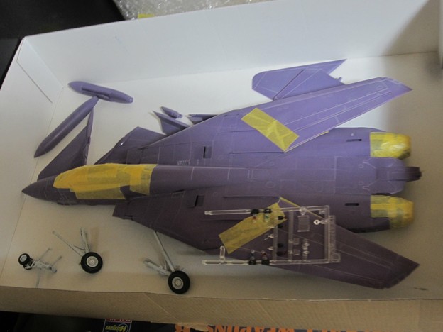 キティーホーク1/48F-35BライトニングII形になりましたよ、めがっさかっこいいです。さて、キティーホークというメーカー名は聞き覚えないなぁと言う方もおられるかと思います。比較的新しいメーカーで、中国の模型メーカーとなります。新しいキットなのでディテールなどは申し分ないのだけど、合いに関してとか作りやすさという観点では、まだまだといった感じもあります。国内メーカーは、射出成形時のプラの反りなども考慮して金型を起こしたりしますが、まだ向こうのメーカーはそういったノウハウを持ち合わせていないので、2D上のCADデーターをそのまま金型に流し込むだけで製作していますので、どうしても細かなところで合わないと言うことが出てきます。とは言いましても、プラモデル製作の基本を押さえた工作をすることによって、きちっとした形にすることは出来ます。「簡単?」と問われると、やはりそれなりに苦労する箇所もありますので、どうしても不安な方は当方まで製作依頼出してください(そこかw)画像はひたすらマスキングしたときの画像です。飛行機プラモデルは半分はマスキング工程が占める!!という典型的な状況ですね。 ☆楽天市場☆ 特価プラモデル一覧リスト プラモ製作に役立つ動画公開中 ●おいさまのプラモチャンネル(プラモデル製作に関する動画を公開しています。) ●プラモデル製作ライブ配信 もけもけチャンネル ●プラモ屋さん.com(プラモデル製作代行サイト)