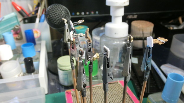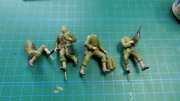 あっという間に2016年最初の月が過ぎ去っていきますね。全然製作スピードが上がらないのは、この寒さのせいだ!!と叫んだところで何も変わらないですよね、とほほそれでは、まずはタミヤ1/35 90式戦車マインローラー板状に一体成形されていた手すり部分を削り落として真鍮線に置き換えました。非常に些細なことなのですが、かはり人がつかめるように出来ているところは、模型でも同じようにすることにより存在感は増すと思います。加工内容は動画で公開していますので、興味ある方はご覧ください。造形村1/32震電の製作燃料タンクや酸素ボンベなどを塗装しました。あてがって仮組みしつつ奨めていきます。バリピタという訳ではなく、合いは少しルーズなので各パーツ毎にある程度のすりあわせが必要になってきます。外板のパーツです、まずはダークグレイで内側を塗装します。今回成形色が白なので、透け防止にダークグレイを打っています。操縦席内壁はコクピット色で塗装します、乾燥後にマスキングを行い内部はシルバーで塗装を行います。前脚格納庫は内壁をシルバーに塗装した後に調色したクリアー塗料を塗装して青竹色としています。ドラゴン1/35アメリカ陸軍レンジャー1945は、各ポーチ類を取り付けしました。これも残すところあと少しの所まで来ました。ファインモールド1/35 九五式軽戦車は下地塗装を行いました。どのカラーリングでマーキングにするのか結局依頼主さんから返事が来てなくて、このまま奨めて良い物か悩み中ブログ見ていたら、早急にお返事ください。 ☆楽天市場☆ 特価プラモデル一覧リスト プラモ製作に役立つ動画公開中 ●おいさまのプラモチャンネル(プラモデル製作に関する動画を公開しています。) ●プラモデル製作ライブ配信 もけもけチャンネル ●プラモ屋さん.com(プラモデル製作代行サイト)