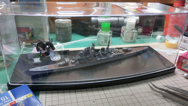 現在、定期大和週間でタミヤ1/350戦艦大和を製作しております。そんな中で、門下生の完成品の紹介です。アオシマ 1/700艦これ摩耶まったく、初めての艦船プラモデルでほぼ初めてのエアーブラシを使用して製作した作品になります。初めてでも、きちんと形になりました。基本に忠実に説明書に従って製作を行って行けば、だれでも完成させられるという好例かと思います。むろん、艦船プラモのお約束パーツ妖怪隠しやマストポッキリというお約束はやっています。それでもめげずに製作をおこなったから、完成にたどり着いたわけで素直に拍手ですね。この摩耶製作に関しましては、近日中にまとめて動画で公開したいと思います。 ☆楽天市場☆ 特価プラモデル一覧リスト プラモ製作に役立つ動画公開中 ●おいさまのプラモチャンネル(プラモデル製作に関する動画を公開しています。) ●過去作品ギャラリー(今まで製作したプラモデルの画像ライブラリー) ●プラモ屋さん.com(プラモデル製作代行サイト)