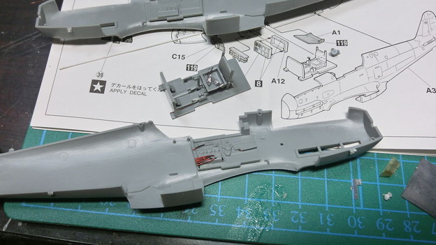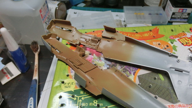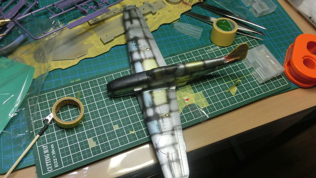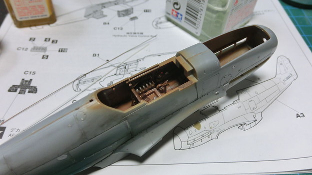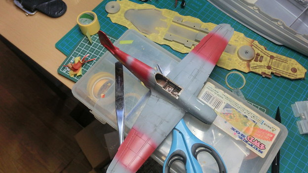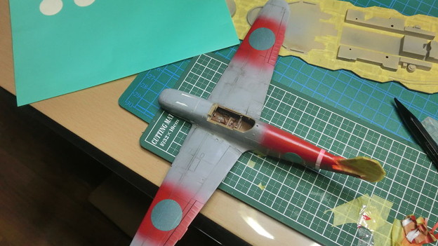 またもや数日分まとめて画像撮影した分だけ書いていきます。飛燕は一部配線などを追加座面調整レバーなども追加しています。機内は指定色通りです。細かいところ塗装したりエイジングしたり金剛はリノリウム塗装しマスキングを行いました。こっちはマスキングして塗り分けこちら側もメッキシルバーで塗装します。飛燕は日の丸などを塗装マスキングパネルシャドーやらいろいろです。