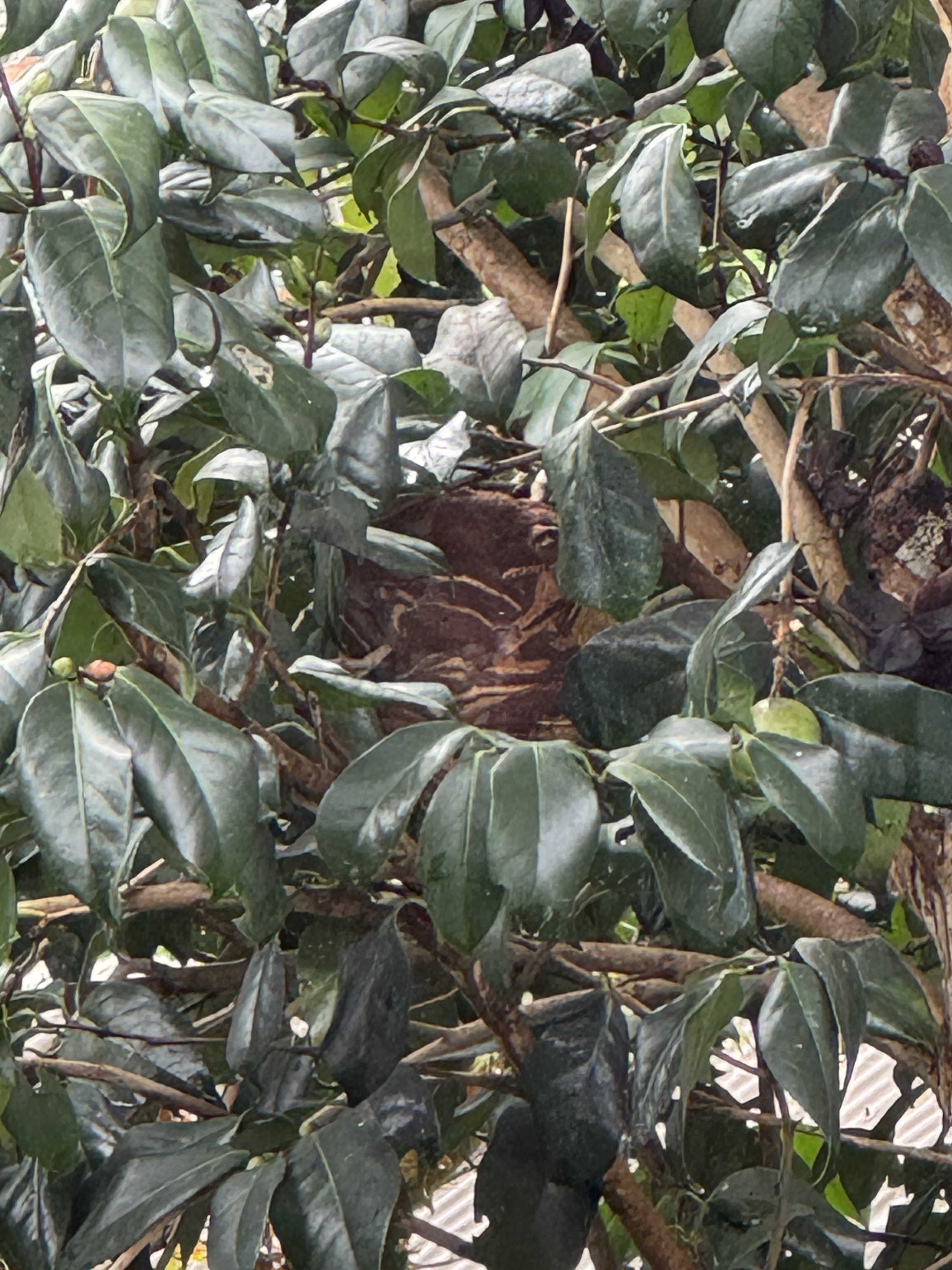 鬱蒼しげる枝をカットしてたら、何かが一切に飛び立って来た。