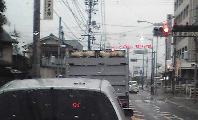 R486を通り町へ出た。会社を出てすぐの大きなカーブの内側、路側帯が広く取られたその場所に、一台の赤い乗用車。遠く目に見ながら進むと、え~~!!??前を軽くぶつけていて、通り過ぎざまに後姿を振り返ると、右のテールランプが何かで衝かれた様に大破している。 特に車で走りながら、気になるものを見つけると、どうしようもなく気になる性格。でも、かといって引き返してまで確認はしないから、いつまでも、いつまでも、その疑問は胸に蓄積して行くと言う悪循環で、その一方で、思考を必要としない「必要な情報の記憶」が全く機能しないのが、なんとも悲しい私の現実。 大方町に着き、消防署の横で信号待ちをしていると、2台前に大きなトラック。アルミの箱の上に何か、白く、ふわっと感のあるようなものが30センチくらいの高さで積まれている。 何だろうと思いつつ目を凝らすと、鶏であった。鶏運搬車。牛とか馬とかはしばしば目にするが、鶏運搬車を見たのは初めて!早速先日新しくした携帯のカメラで撮影。画像をPCにメールで送った。それが昨日の夕刻のこと。 夜中のサッカー観戦で完全に寝不足状態で過ごした昨日一日。夜は案の定、睡魔に襲われた。いつもより少し早く床に就き、今朝は、試験発表中にもかかわらず、サッカー部の部活へ出掛ける息子を駅まで送りかえりに早速出社。いつも通りPCを開きメールソフトを立ち上げてメールを受信。 いつも通り、多くの不要DMを削除しこの管理画面を開いた。さてブログを、と思った瞬間思い出した。鶏運搬車の画像・・・・・・・!?そういえば一通、件名のないメール、あったな。削除したよ。 差出人も確認せず、どうせウィルスメールだろうよ、程度に思いつつ削除したメール、あったよ。あれだったんだ。落胆・・・・・ けれど、思い出した。あのデータは携帯に残っていて、もう一度送信すれば良いのだ。あぁ、ITと言うものは一体どれだけ便利なものだろうか。