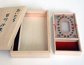 小箱への筆耕者は私の母で、母はその資格を特に持っているわけではありません。その資格も持たない母が、小箱への筆耕にあたるようになった理由は、このおいたちの小箱を立ち上げた時点で、私の中に、この箱に一人ひとりの子供達の名前を綴って届けたい。そして、その筆耕にあたって貰うのは母しかいないと言う思いがあったからです。