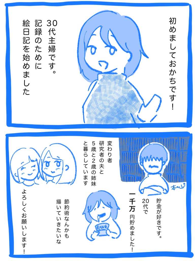 初めまして、おかちと申します。日常記録として絵日記を始めました。趣味はお絵描き、特技は貯金。20代で1000万円の貯金を達成したので、貯め技等も描いていきたいです。よろしくお願いします♪