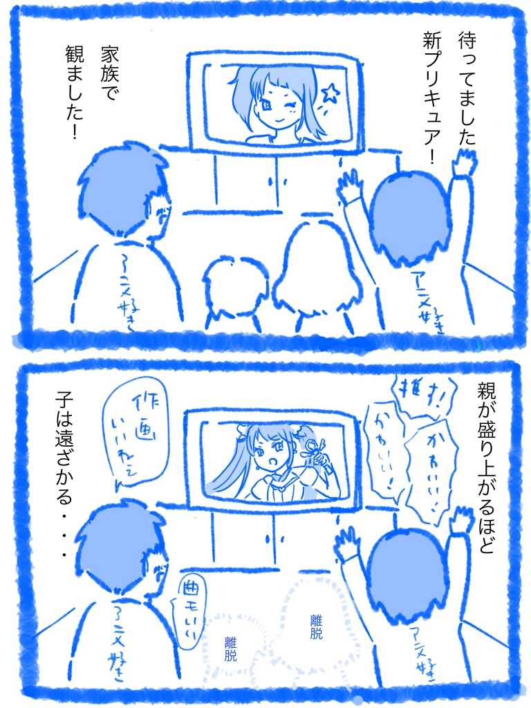私も夫もアニメ好きなので、あーだこーだいいながら見ちゃうんだけど、親が熱くなるほど子供は引いていく笑