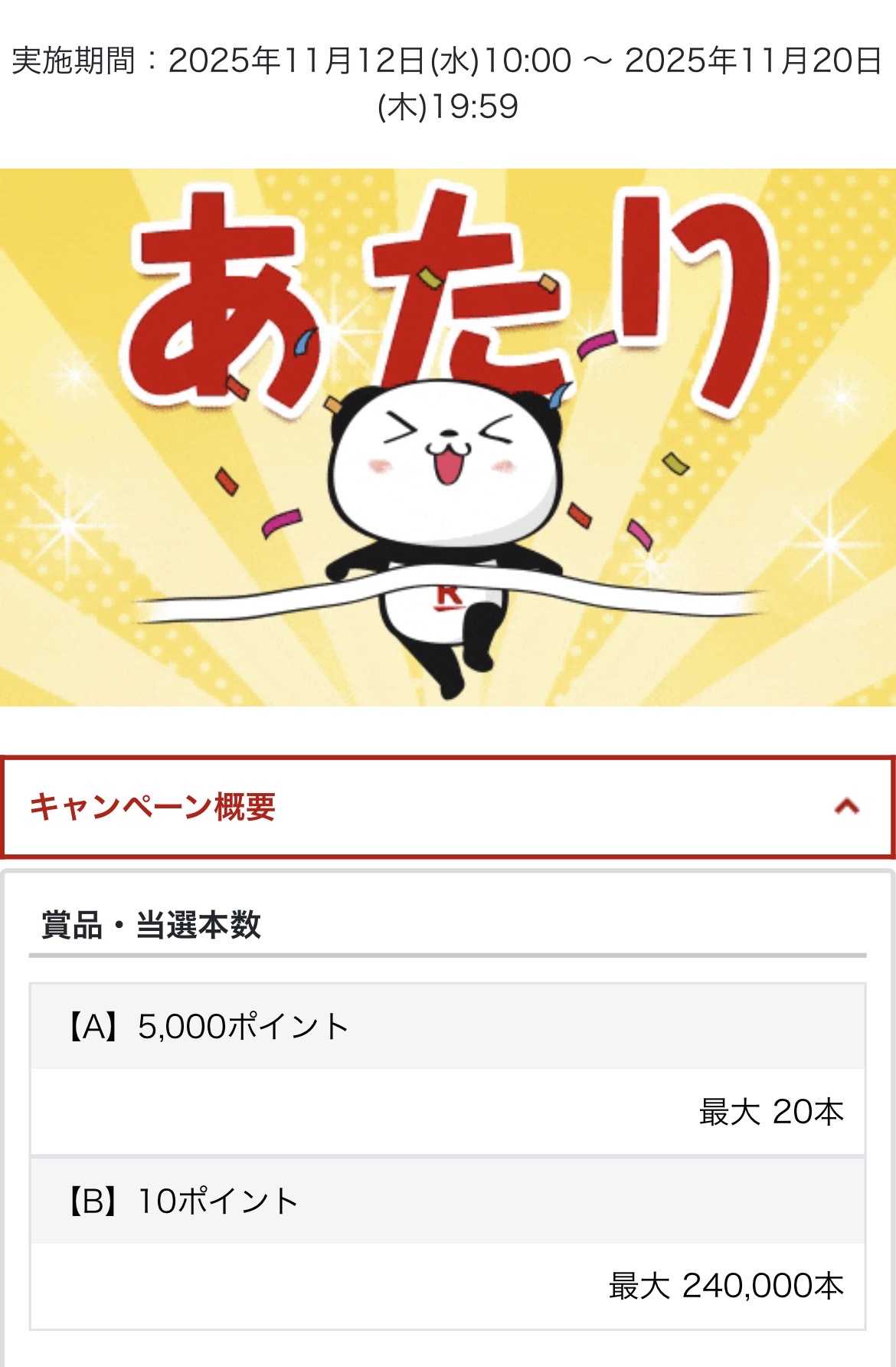 あっという間に10店舗購入していたのでポチれぽです。#当ブログはアフィエイト広告を利用しています。①15%オフクーポンが配布されていた楽天24さんでポチDEAL30%還元さらさ 柔軟剤 詰め替え 超ジャンボ(1350ml*6袋セット)【さらさ】価格:8,890円(税込、送料別) (2025/11/10時点)楽天で購入もっとお安い店舗さんもあるのだけど、DEAL還元を加味したら断然お安いです。DEAL10%還元エリエール プラスウォーター ティシュー コンパクトケース品(5箱パック*4個入...価格:3,400円(税込、送料無料) (2025/11/10時点)楽天で購入今年はインフルが凄そうなので早めに準備しました。ワクチンは先週金曜に息子と接種済です(痛かった🥺)キュレルの泡ボディソープは先日1袋購入して使い始めたらあっという間に減ってゆくので追加しました。キュレル 泡ボディウォッシュ つめかえ用(380ml)【イチオシ】【キュレル】価格:957円(税込、送料別) (2025/11/10時点)楽天で購入限定1個のみぽち出来たチェキフィルムも。富士フイルム チェキ用フィルム instax mini ソフトラベンダー(1個)価格:987円(税込、送料別) (2025/11/10時点)楽天で購入ラベンダーって。。。どんな感じに仕上がるのかな?②いつもの福さ屋さんの無着色辛子めんたい切れバラ子【10%OFF】【エントリーでポイント10倍】【訳あり】 送料無料 無着色 辛子...価格:4,860円(税込、送料無料) (2025/11/10時点)楽天で購入10%オフ+エントリーで10%還元+間違い探し100円オフクーポンを使いました。③キハチさんで誕生日クーポンを使ってポチ。メルマガ登録していると2000円以上で500円オフクーポン貰えます現在は300円クーポン配布中です【クーポン&ポイント10倍】お歳暮 プレゼント ギフト クリスマス 2025 百...価格:3,390円(税込、送料無料) (2025/11/10時点)楽天で購入キハチの日スペシャルBOXと悩んだけれど、私はパイが好きなのでセットにしました。④1000円ポキで原神のシールウエハースバンダイ(BANDAI) 原神[Genshin] シールウエハース 20個 BO...価格:1,000円(税込、送料別) (2025/11/10時点)楽天で購入キラキラしているので、キラキラならなんでもいいお子様にもお勧め。まだ買えます!⑤お出かけ用のアップルウォッチバンドMARY QUANT PU WATCH BAND マリークヮント アップルウォッ...価格:4,950円(税込、送料無料) (2025/11/10時点)楽天で購入到着済、少しお高いなと思ったけれどとても上品な感じで気に入りました♡⑥LINEクーポンで半額だったポップコーンをポチ【LINE登録でクーポン配布中】Sサイズ(約0.45リットル)8袋セット フレー...価格:3,980円(税込、送料無料) (2025/11/10時点)楽天で購入クーポンはいろんな種類をほぼ毎日発行されていたので、機会があれば違うものを買いたいと思います。➆ブロガー様のシクレ50%オフクーポンを使ってレターポケットとコインケースをポチ。到着済、とっても高級感ありました。\クーポン使用で1428円〜/ ウォールポケット レターポケット 吊るす 小物も...価格:1,680円~(税込、送料無料) (2025/11/10時点)楽天で購入\クーポン利用で1184円/ コインケース 牛本革 薄い レディース「コインケー...価格:1,480円(税込、送料無料) (2025/11/10時点)楽天で購入⑧アモパシさんで1500円ポッキリだったクレンジングバームをポチ。★10日にOPEN!★\1,500円ポッキリ+ギフト付き+送料無料/【Mamon...価格:1,500円(税込、送料無料) (2025/11/10時点)楽天で購入マラソン共通100円オフクーポン使いました。⑨チェキ用電池カメラ用リチウム電池 CR123A 2個パック Panasonic パナソニック...価格:1,194円(税込、送料無料) (2025/11/10時点)楽天で購入⑩オリヤンさんは 到着レポ に詳細を書きましたー!よろしければご覧ください😊外野(主人と息子)がうるさいのでスーパーへお買い物に行ってきます!P20倍中の楽天KOBOもポチるか悩みます!