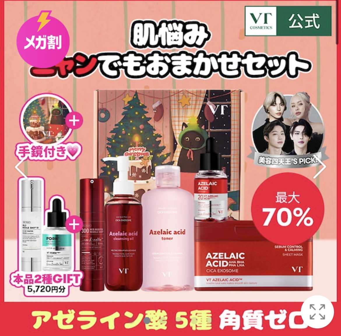 こんばんはー今日はメガ割初日時報初参戦していました!#当ブログはアフィエイト広告を利用しています。QOO10さんのメガ割は17時開始(いつも17時からなら厳しい)なので職場からポチポチしましたYO!商品ページはここからどうぞ→肌悩みニャンでもおまかせセットアゼラインとPDRNをポチして50%オフクーポンを使いました。購入完了まで30分掛かりました💦楽天のサーバーの偉大さを再確認しました(笑)神トククーポンで最安!455円!★神トク★\W割引で77%OFF→1袋455円★11月20日20:00-11月2...価格:650円(税込、送料無料) (2025/11/21時点)楽天で購入楽天スパセでも似た商品販売されます。まだアフィ出来てませんでしたhttps://item.rakuten.co.jp/vtcosmetic-official/2024akiset/内容は違うけれど楽天のほうがそもそもの金額がお安いし、たぶん普通に5のつく日には20%オフクーポンとか使えるだろうからどうしても欲しいお品が入ってる場合以外楽天で買う事をお勧めします。でも新製品や商品数などはQOO10さんの方が早くて多いのでもう少しぽち予定です。Qoo10さんへはリーベイツ経由がおすすめ