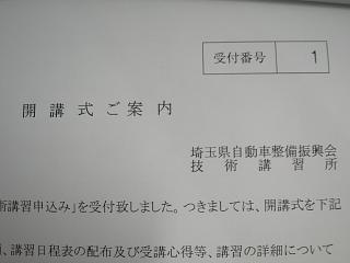 来年の3級ガソリン整備士試験のために「整備技術講習」の申し込みに行ってきました。大宮にある教育会館というところで9時から申し込みが開始するのですが、定員があり申し込みに並ぶ列が出来ると聞いたので家を早めに出ました。6:40くらいに出発し混雑を避けて16号を使わずに行ったら・・・予想より早く着き7:50頃には会館の周りでウロウロすることになってしまいました。結局、列が出来る前に受付に行ってしまい時間より早く申し込みをさせて貰いました。受講番号は「1番」です。何でも1番は気持ちが良いものですね~