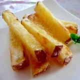 サツマイモを使って何か作ろうと思ってたのに、買ってから忘れて、冷蔵庫にしばらく入ったままのが1本発掘されました夕方、子供等が(夕飯を作っているというのに)腹減った!とで、こちらを作って見ました。**********************************************さつまいも★カリッとスティック焼き料理名:さつまいもポテト作者:手作り大好き★さくら■材料(2人分)さつまいも / 1本片栗粉 / 適量塩 / 2つまみ油 / 適量■レシピを考えた人のコメント揚げないのでフライドポテトよりヘルシー片栗粉がサクッと仕上げてくれます子供のおやつ お酒のつまみに♪詳細を楽天レシピで見る**********************************************私は胡麻油が好きなので、胡麻油を使って焼いて、仕上げはふりかけ(?)の、ゴマ塩をかけました。お菓子を食べるよりは、おかずのようなものなので、良かったと思います美味しくてすぐ無くなりましたよ!