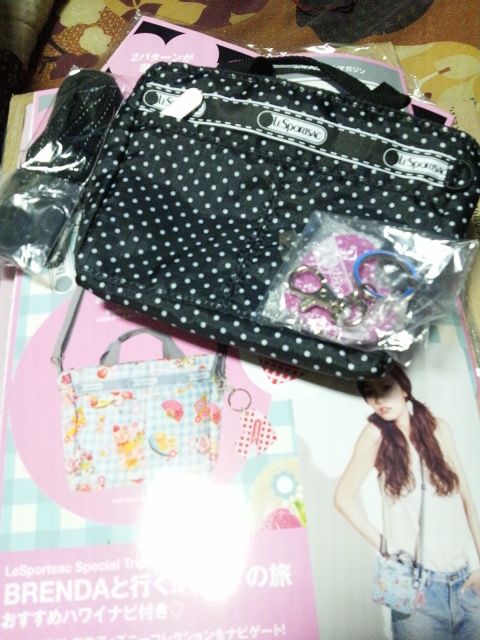 今年のムック本2種を購入しました。【送料無料】LeSportsac SPECIAL MAGAZINE 2012 Spring-Summer Collection (ドット柄)【送料無料】LeSportsac SPECIAL MAGAZINE 2012 Spring-Summer Collection(ピクニック柄)しばらくレスポを買ってなかったせいもありなんと、今年初の日記になってしまいました!!どこかで今回のムック本の情報をGetしたときからドットは楽器ケースに着けて小物入れにしようと思いました。ピクニックは可愛いので、きっと二女が気に入るだろうと思ってたら案の定二女が「私が使う~」(笑)この付録、二女(この春小4)が持つと調度いい~♪結構必要なもの(ハンカチ・ティッシュ・二つ折り財布・、まもりーの:携帯)が入るので、昨日も今日も持って出掛けましたわ。裏地もちゃんと付いていて、ミニミニエブリガールトートみたいでかわいい!最初見た印象は、「ちっちゃーい!」だけど、クッションぽくなってるし、ロゴテープも印刷だけど、これ位小さいと、ホントにテープが貼ってあるより逆に可愛いしロゴ切れもないからいいんじゃないですか?だんだん気に入ってきましたね。最近は、レスポはもっぱらプレゼント用を探す毎日・・・そろそろお気に入りの新柄が出てバッグも欲しくなってきましたが・・・レスポートサック新着情報はこちら にほんブログ村 色んなテーマに沿ったブログが楽しめるサイトです