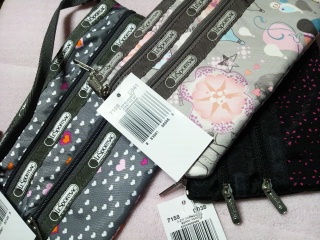 私がスマホケースにしているレスポートサックの3ジップポーチは、何かと便利なので、よくプレゼントする用として購入します。今回は、東京からうちで行う法要に出席されるために来られた叔母様母娘さんに。大阪のお土産って、ピン!と来るもの自分的にはあまりなく、お菓子などは粗供養としてお渡ししている事も有り、色々とお気づかい頂いたお礼の意味も込めて、2人にお似合いの柄を選んでみました。 D041(アウェイ ウィ ゴー) と、D038(ベリー パーフ)です。前からベリーパーフが気になっていて、手にとって見たのは初めてでしたが、プリントではなく2色の布地を重ねてあり、花柄に型抜きした中からショッキングピンクが鮮やかに見える所がとっても高級感が有り、叔母様にプレゼントするのにとってもピッタリ!と思いました。でも、このタイプ、あまり楽天ショップさんでも取り扱いが少ないし割引率も低いので、自分用にはまだ手に入れられてませんアウェイ ウィ ゴーはベージュ地に馬と馬関連のグッズ(馬蹄とか乗馬のブーツ?)などが色とりどりに描かれる中、なぜか「クリオネ?」が泳いでいます。。。でも可愛いんですが プレゼントしたお二人はとても喜んで下さったので良かったです!そして、一緒に写真に写っているのは、かねてから気になっていた柄「D022(ハートブレイカー)」のピクシーです。お気に入りに入れてたら売価が千円引きになりポイントも10倍に!しかも、ピクシーは「カンヌ」を持ってますが、もう1つ欲しかった日本ではレア型なので迷わずポチしていましたピクシーは3ジップのように3つのポケットがあるのですが一回り大きく、片方が外せるストラップが付いているので、なかなか便利です。A6サイズくらいのスケジュール帳は厚みがあっても入りますし、貴重品を入れたりするバッグinバッグにいいと思いますハートブレイカーはケイシーも可愛くて欲しかったのですが。。。私にはちょっと可愛い過ぎるかなぁ。。。と思ってたので、ピクシーで買えて良かった久々にヒットな買い物が出来て大満足です~ いろんなバッグ・小物に関するブログが見られます!にほんブログ村
