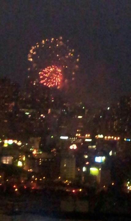 都会の夜景とともにみる打ち上げ花火は綺麗でした。