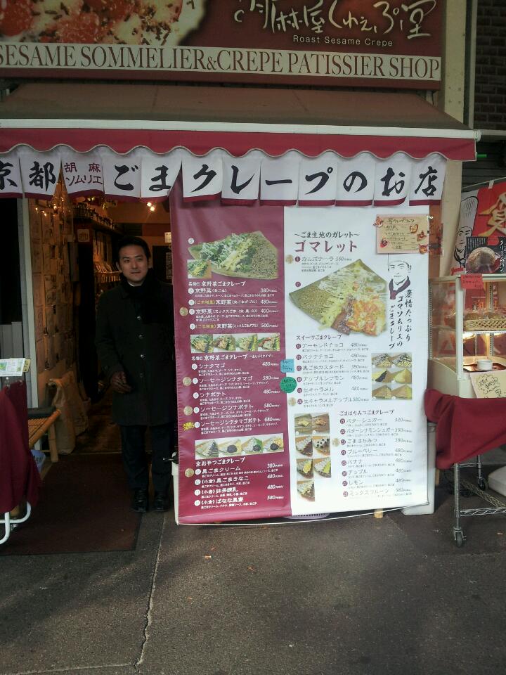マクロビ友達のまりちゃんと、ゴマソムリエ深堀氏と京都散策。 三条会商店街のゴマくれえぷ屋さんとゴマソムリエの深堀氏 ここてはごまと京野菜入りくれえぷと黒ゴマクリームくれえぷをごちそうになりました。 御金神社の金色の鳥居 節分の日ににぎわう神泉苑の恵方に本殿を回して向ける方位殿。 へご案内いただいて、ボケットというレトロなコーヒーショップでコーヒーとサンドイッチをごちそうになりました。 ゴマ製品一杯買っちゃいました(*^^*)