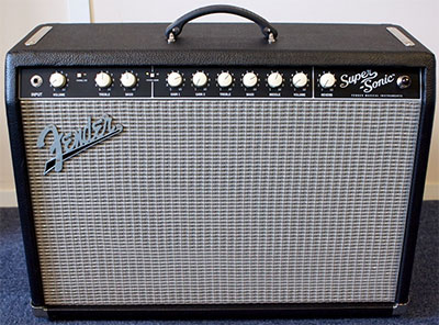 Fender USA Super-Sonic 60 ComboVintageチャンネルでは伝説的な'65 Vibroluxのスパークリートーンと'66 Bassmanの厚めなクリーントーンが選択できるVoice切替スイッチを装備し、Burnチャンネルではデュアル・ゲインコントロール(ポストEQ)を採用することでクリーミーかつ図太いModernハイ・ゲインサウンドを表現してくれることから、世界中のプロ・ギタリストたちから絶大な支持を集めているSuper-Sonic。新しいSuper-Sonicは低音域レスポンスやファット感がさらに増加し、さらにギターの持つ個々のキャラクターにマスクをかけない自然なオーバードライヴサウンドが得られるよう改良されました。Output:60 watts into 4 or 8 ohms (Switchable)Tubes:6 x 12AX7, 2 x 12AT7, 2 x 6L6Power Handling:NSpeakers:1-12" CelestionR Vintage 30_ 8 ohm, 60 watt SpeakerControls:[Vintage Channel] Volume, Treble, Bass, Voicing Switch (VibroluxR/BassmanR).[Burn Channel] Gain 1, Gain 2, Treble, Bass, Middle, Volume, Master Reverb, Rear-Panel Effects Send/Return Level ControlsWeight(Kg):24.5Size(HxWxD)cm:45.2 x 64.5 x 25.9Accessories:4-Button Footswitch for Channel, Fat, Reverb, Effects Loop CoverFender USA Super-Sonic 60 Combo 【特価】 【RCP】価格:147,000円(税込、送料込)
