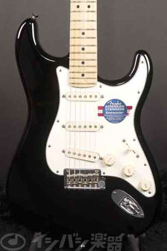 Fender USA American Standard Stratocaster Upgrade Black MapleフェンダーUSAアメリカン・スタンダード・ストラトキャスターです。2012年にカスタムショップ製のPUへとアップグレードされたNEWスペックです!!最新テクノロジーにより、プレイアビリティや、様々な音楽ジャンルへの適応性を追及しながらも、オリジナル・フェンダーへのこだわりがしっかりと随所に感じられるラインナップ。「ストラト選びで迷ったならこれがおすすめ」と自信を持って言えるような、コストパフォーマンス抜群のよくできた仕上がりのギターです。2008年のアップグレードによって、塗装のアンダーコートが薄くなったり、ブリッジやトレモロブロックがヴィンテージスタイルのものに変更されたりと、楽器としての良質な鳴りを追求してきたアメスタ。今回のアップグレードでは何とカスタムショップのFat50sピックアップをマウントしています。これがまたグルーヴィで艶とハリのあるサウンドメイクに貢献しています。ピックアップカバーなどがエイジドカラーになりましたので雰囲気と貫禄のあるルックスを演出しています。ヘッドストックは艶ありのグロスフィニッシュで、ネック裏はスムーズなフィンガリングを可能にするためサテン仕上げが採用。握りやすいモダンCシェイプネックで9.5インチRの比較的フラットな指板ですので、ハイポジションでの音詰まりも起きにくい構造になっていますし、ヴィンテージリイシューモデルより半音高い音までプレイできる22フレット仕様(ミディアムジャンボフレット)というのも嬉しいところです。Fender USA / American Standard Stratocaster Upgrade Black / Maple 【フェンダーUSA】【ストラトキャスター】【送料無料】【smtb-u】価格:168,480円(税込、送料込)