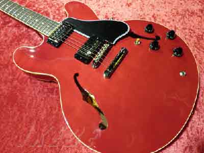 Gibson Custom Shop Historic Collection 1959 ES-335 2013 2013年製、ピックガードを同タイプのものに交換済みですが、演奏では未仕様の極上コンディションとなります。 復刻ES-335シリーズの最高峰である、ナッシュビル工場製1959年スタイルドットポジション仕様ですね。センターブロックの形状ほか細部において、現行ギブソンの最上級クラスの復刻ぶりを誇るモデルとして人気を博しております。その生産本数の少なさゆえ、市場でも常に品薄の人気モデルでございます。程よい生鳴りと57クラシックピックアップのコンビネーションにより、心地よいカラッとしたトーンと低音弦側を弾いたときの豊かな倍音感が魅力です。その使いやすいサウンドはさまざまなシーンにおいて活躍してくれることでしょう。 前述の通り、ほぼ未使用コンディションとなっております。目立つような打痕等はございません。素晴らしいコンディションでございます。Gibson《ギブソン》 Custom ShopHistoric Collection 1959 ES-335 Dot Reissue'13 Faded Cherry【中古】価格:365,040円(税込、送料込)