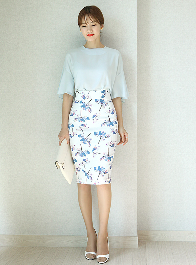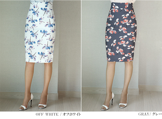 【一部予約】ペイントフラワープリント エンボスタイトスカート