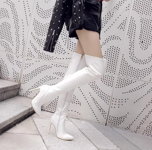 楽天のサイト:レディース ニーハイ サイハイ ブーツ エナメル ポインテッドトゥ ピンヒール12cm