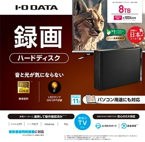 ▶ 8TBという大容量の外付けのHDDがあれば、TVやPCのデータ保存は大丈夫だと思います!