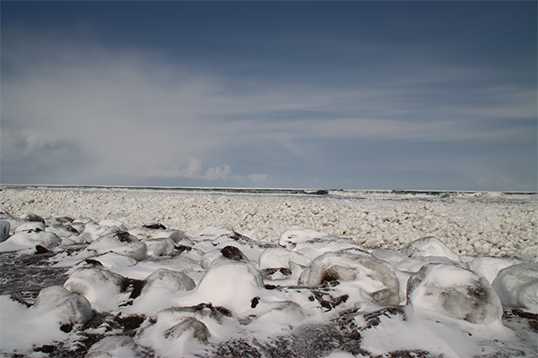 大雪に伴う風の影響か、一度沖に行ってしまった今年度の流氷ですが、またしても戻って来てくれて再接岸しました!
