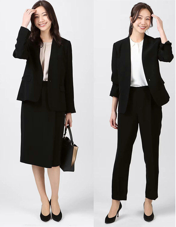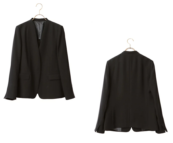 ▶ 楽天のサイト:レディース ビジネス フロントホックV ノーカラー ジャケット ブラック 洋服の青山