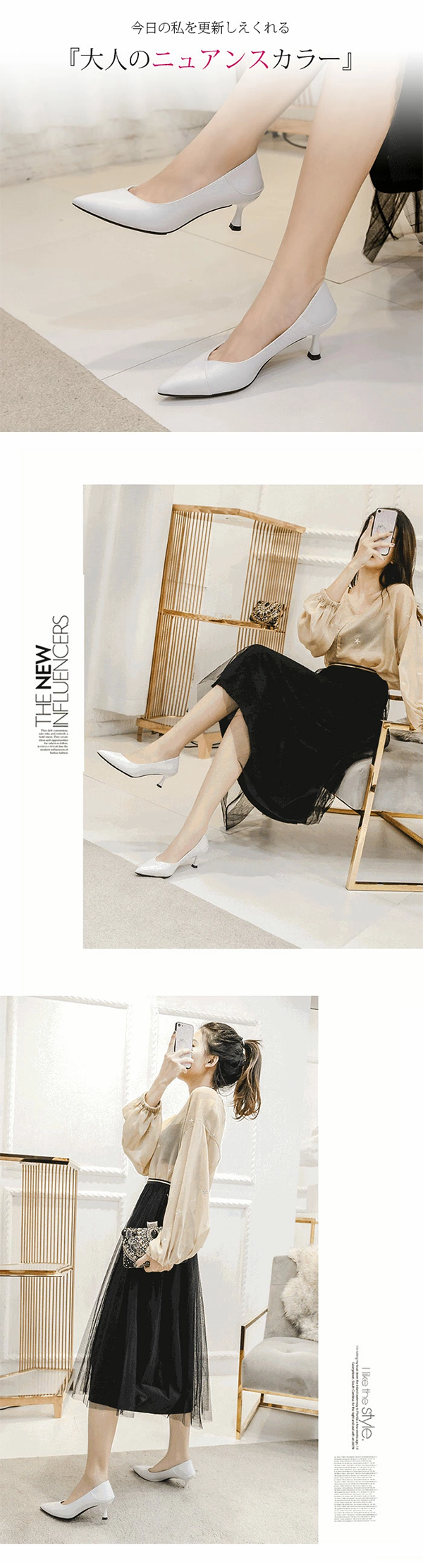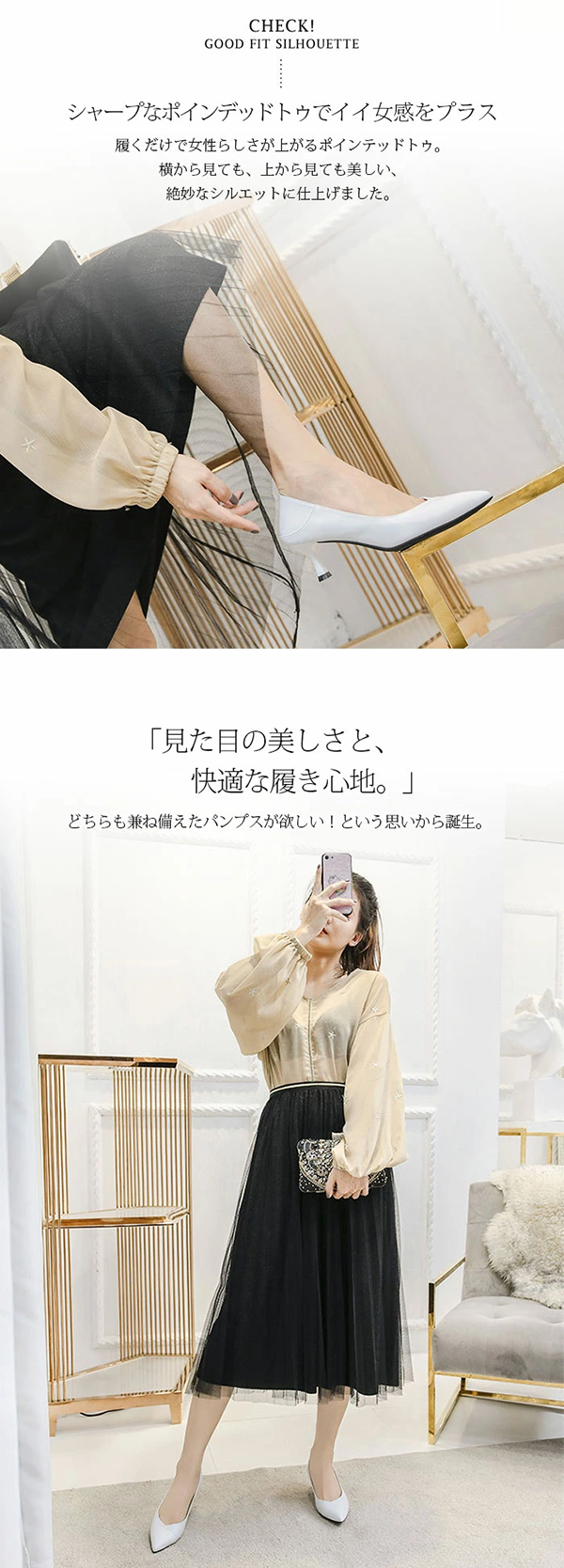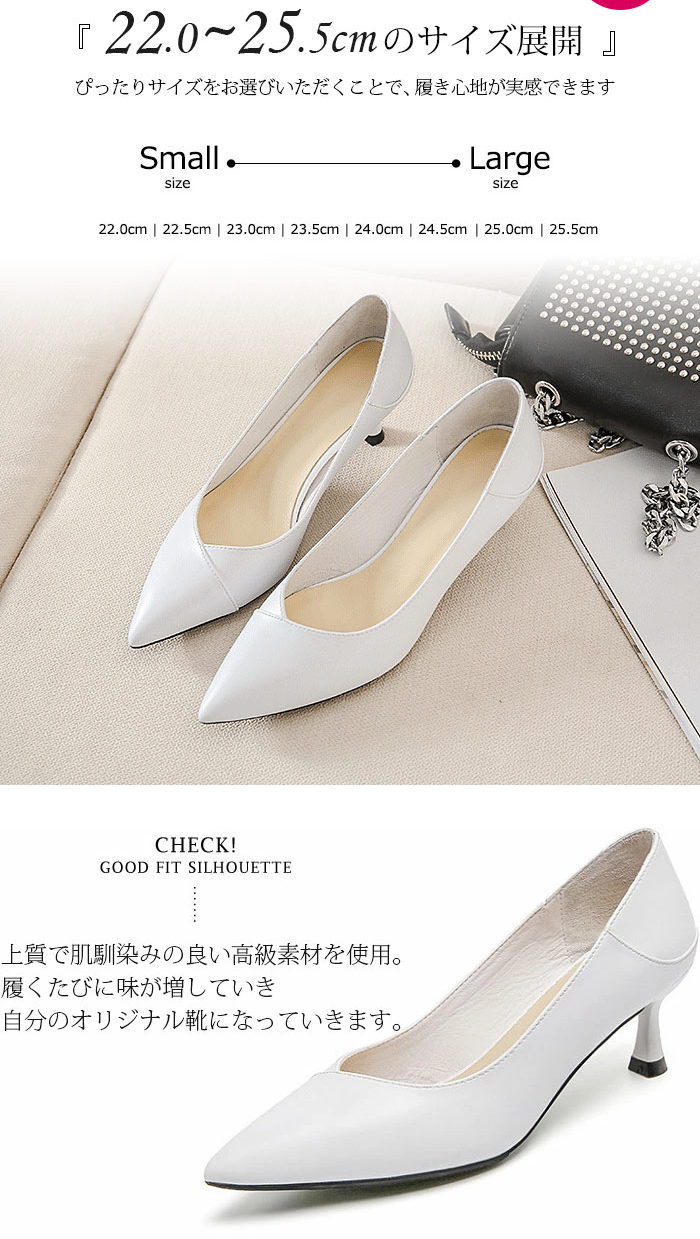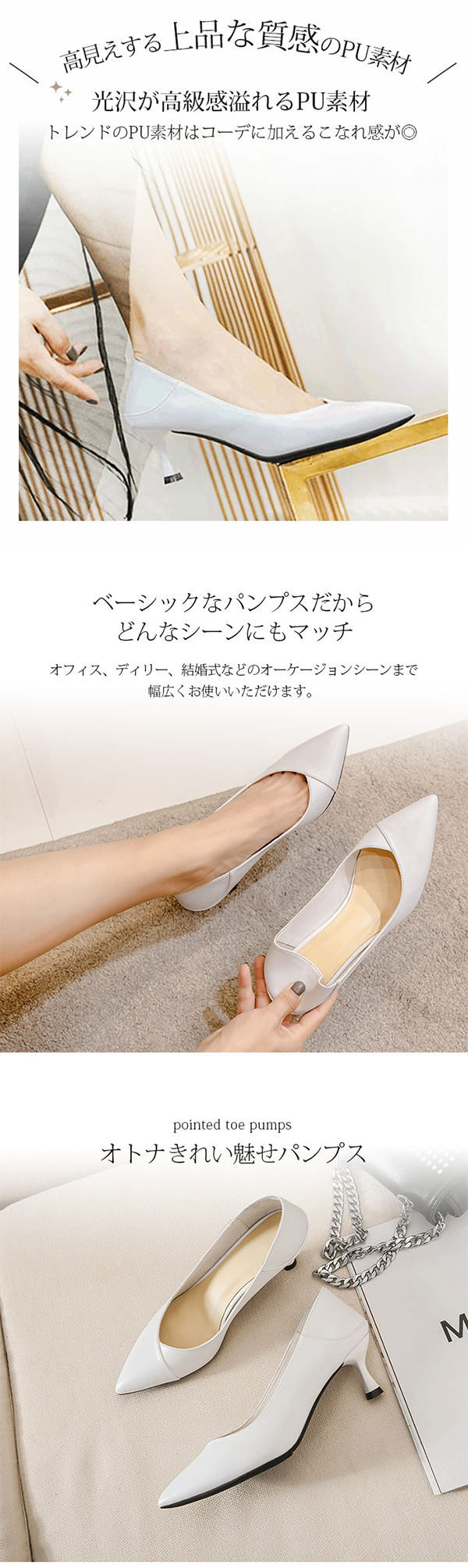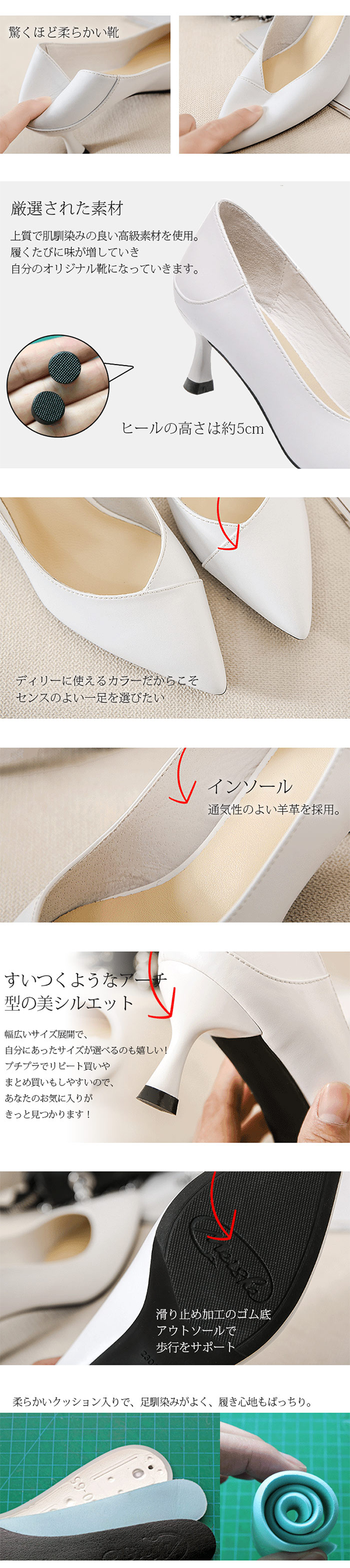 レディース パンプス ポインテッドトゥ ピンヒール5cm ホワイト