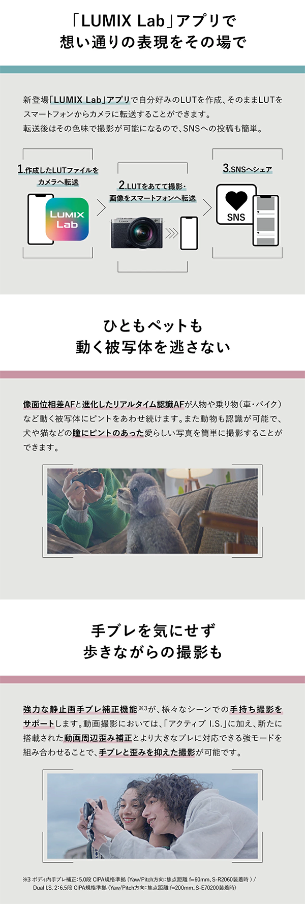 ●付属レンズ:LUMIX S 18-40mm F4.5-6.3(S-R1840)広角標準ズームレンズ + LUMIX S 50mm F1.8 (S-S50)