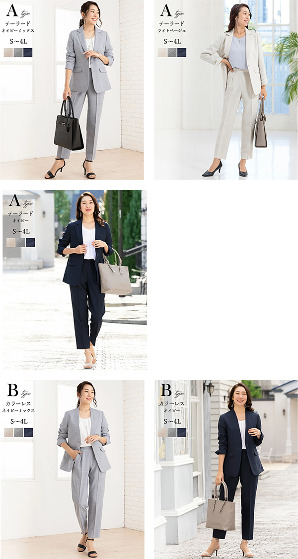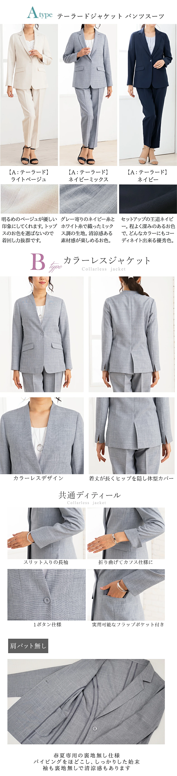 ・A テーラード:ネイビーミックス ・Aテーラード:ライトベージュ ・Aテーラード:ネイビー ・Bカラーレス:ネイビーミックス ・Bカラーレス:ネイビー