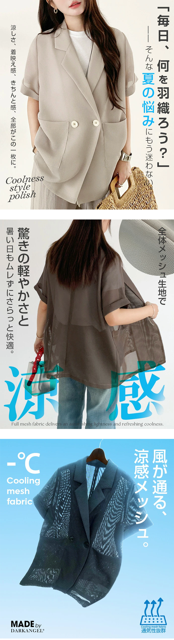 レディース テーラード ジャケット 半袖 メッシュ Dark Angel