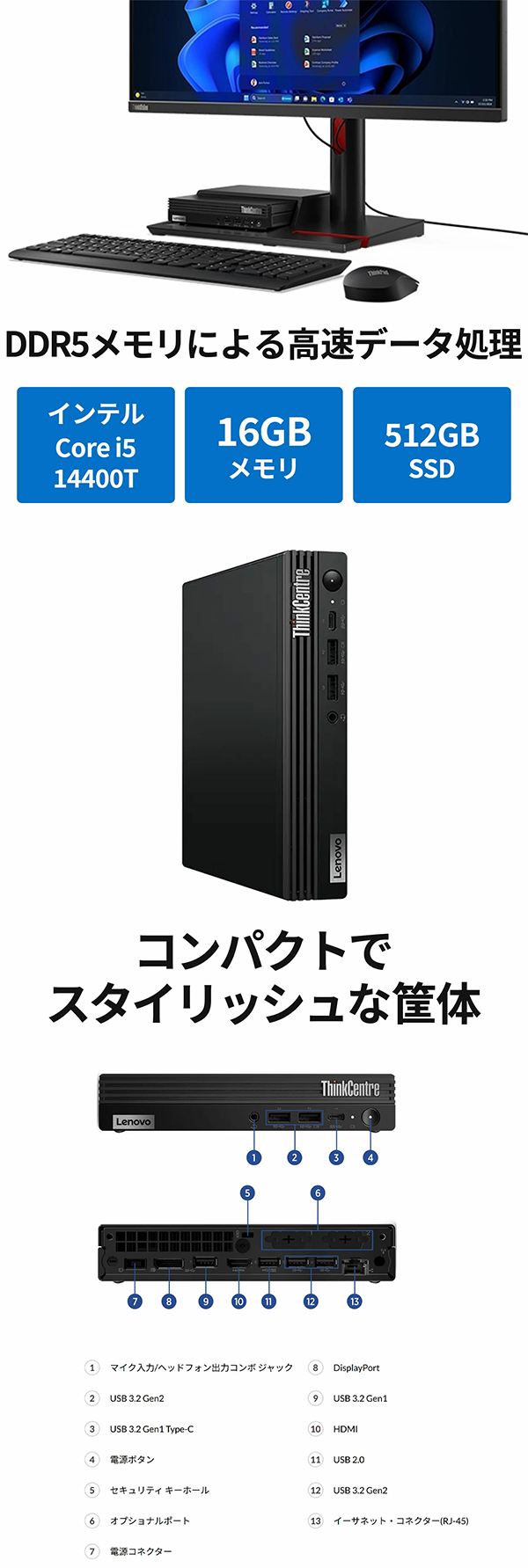 ▶ 楽天市場のサイト: 新品 ミニデスクトップパソコン PC レノボ Lenovo ThinkCentre M70q Tiny Gen5 14世代 Core i5 Windows11