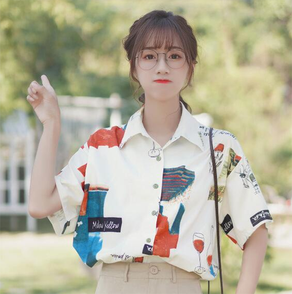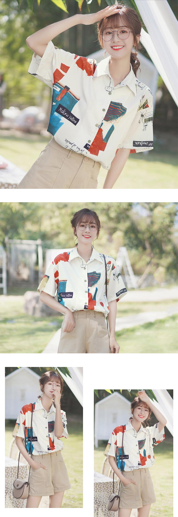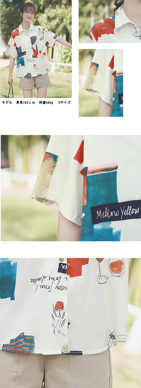 ★送料無料★総柄ゆったり半袖シャツブラウス★シャツ アロハ 半袖シャツ アロハシャツ ブラウス 総柄 ベーシック シンプル 開襟 レディース カワイイ トレンド 人気 デザイン ゆったり 柄シャツ ポップ 韓国ファッション★