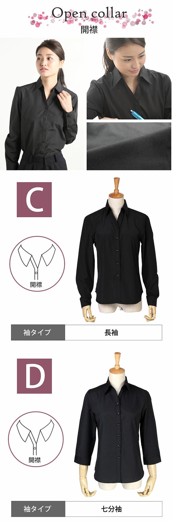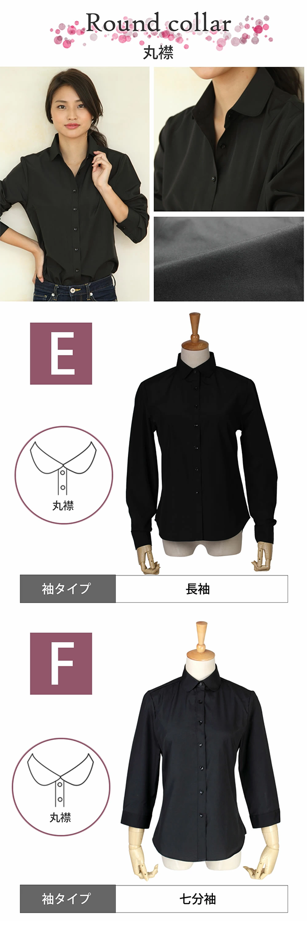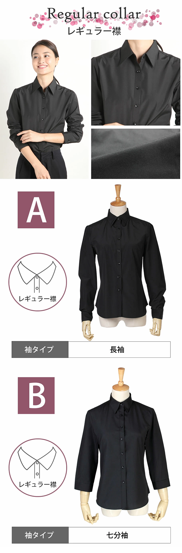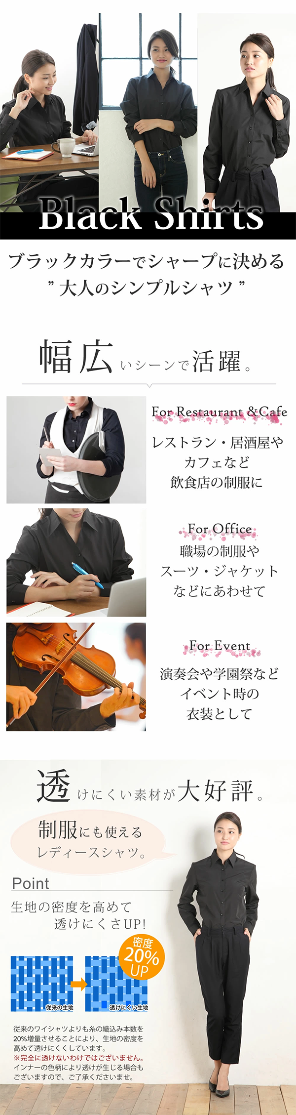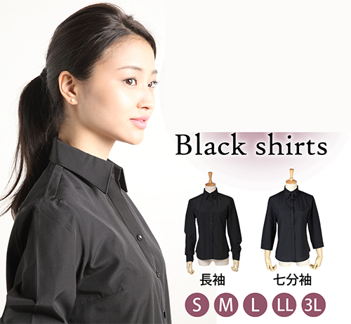 ブラウス レディース シャツ 黒 ブラック オフィス ワイシャツ 長袖 レギュラー襟 開襟 丸襟 長袖 七分袖 事務服 おしゃれ ビジネス 形態安定 制服 カフェ レストラン ユニフォーム at-ll-bl-1924 メール便で送料無料 2枚は2通 福袋