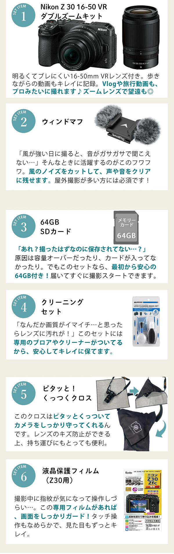 ★ Amazonのサイト: ニコン ミラーレス一眼カメラ Z30 ダブルズームキット & SDカード64GB & クリーニングキット& 液晶保護フィルム & クロス &ウィンドマフ