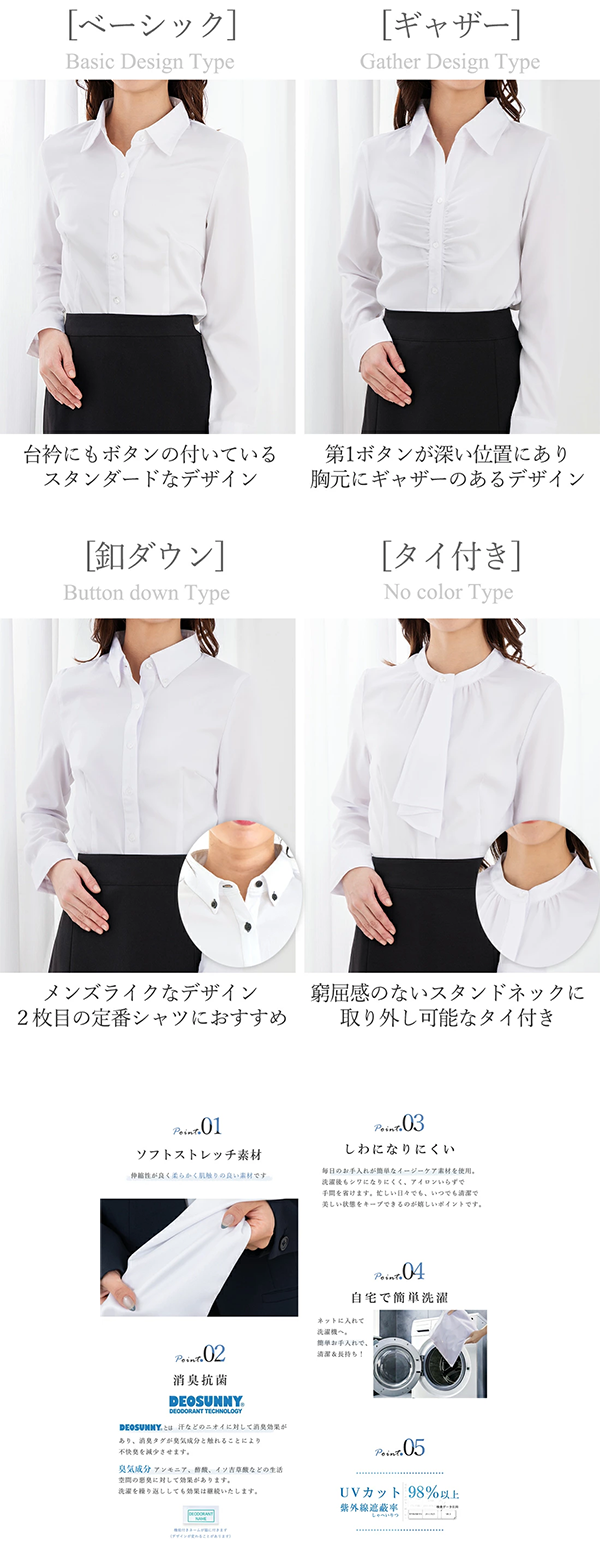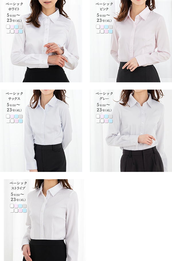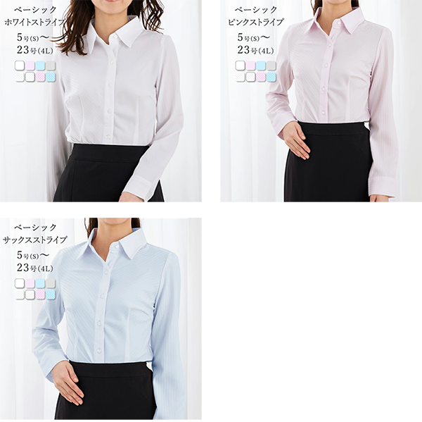 • 定番・王道のデザインで、ソフトストレッチのパウダー長袖のシャツ・ブラウスです!