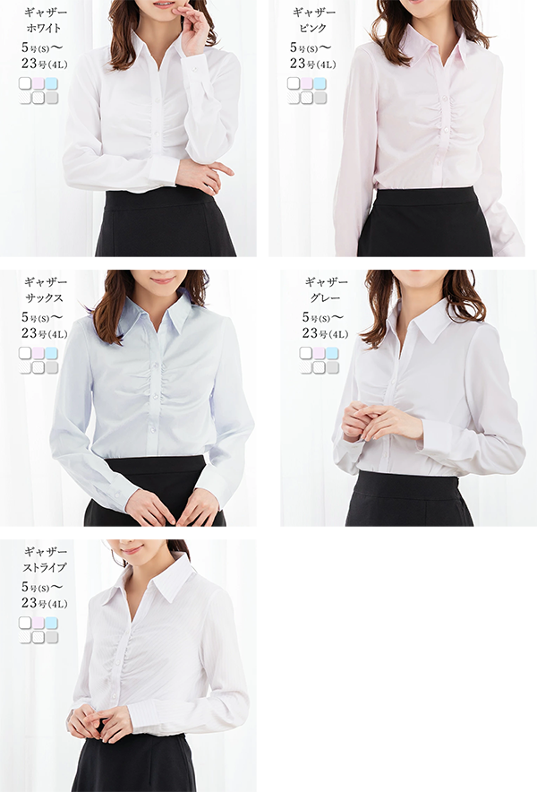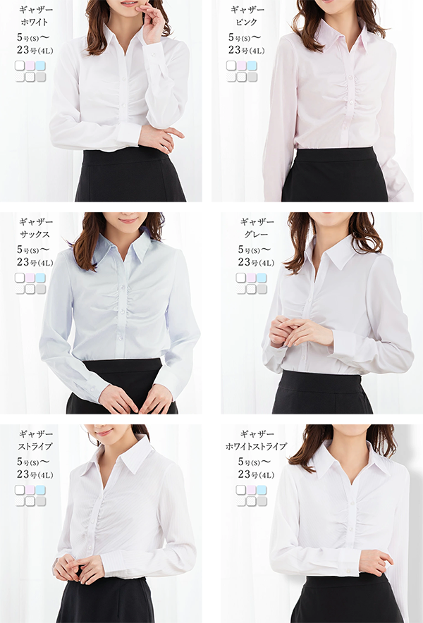 【デザイン】 ・ベーシック ・ギャザー ・釦ダウン ・タイ付き