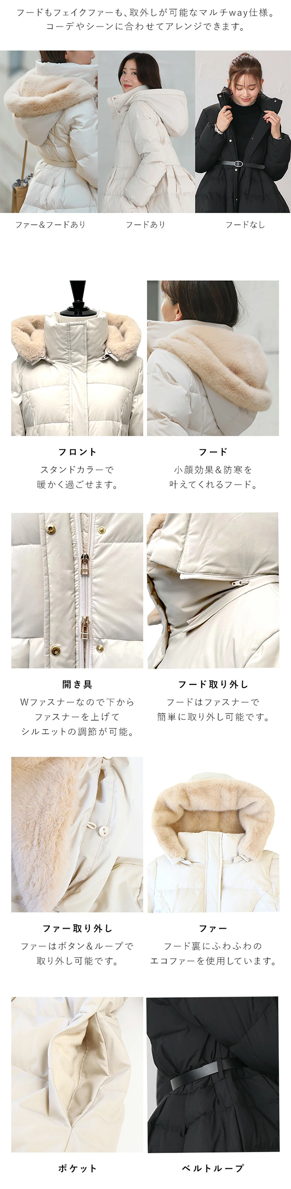 ▶ 楽天市場のサイト: レディース ダウン コート ロング エコファーフード ベルト RUIRUE BOUTIQUE