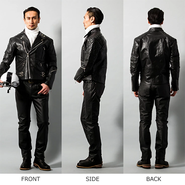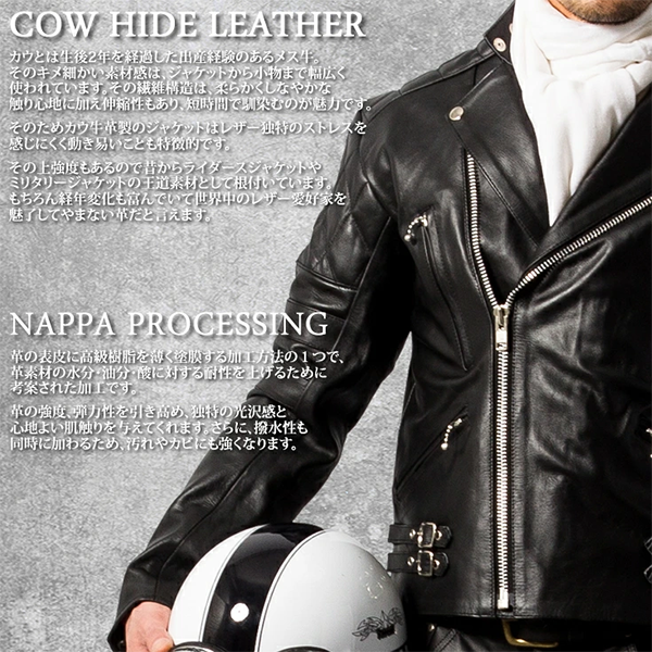 ▶ 楽天市場のサイト: メンズ ダブル ライダース ジャケット 本革 革ジャン ブラック Horn Works