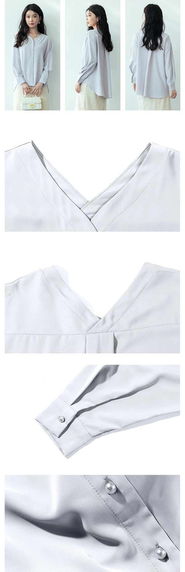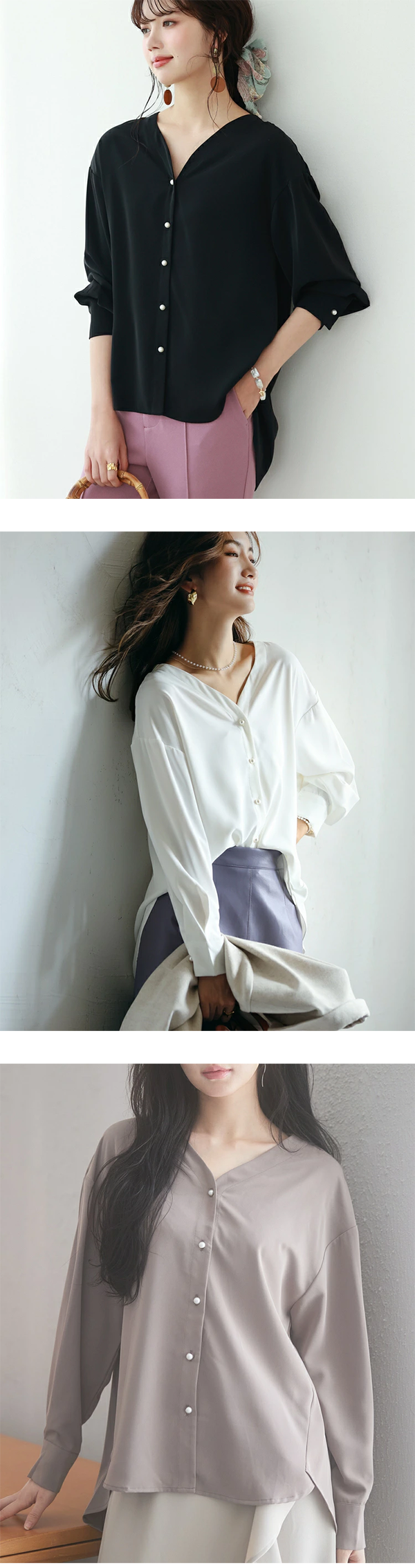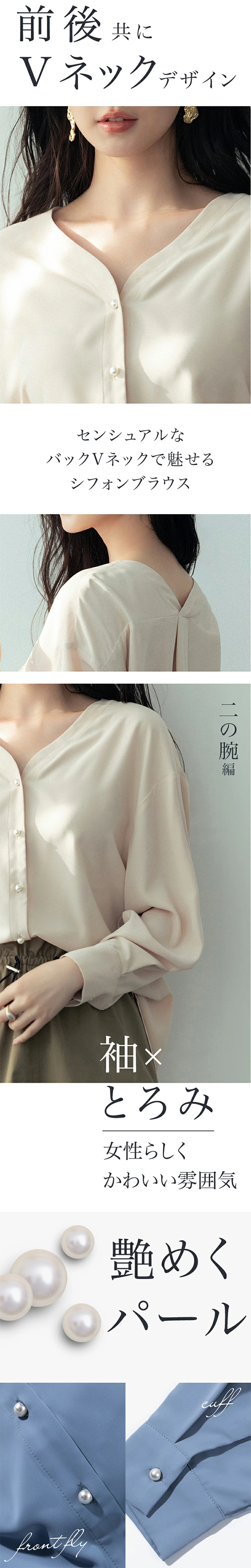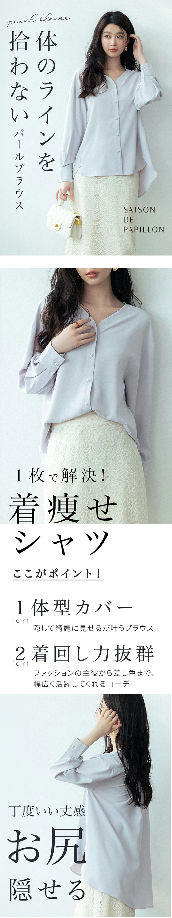 ブラウス 長袖 秋 冬 春 レディース バックVネック とろみ素材 とろみ ゆったり パールボタン シフォン パール Vネック 体形カバー オフィスカジュアル 通勤服 SAISON DE PAPILLON xyz2413