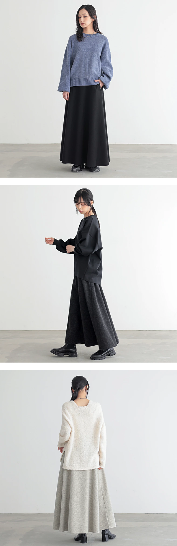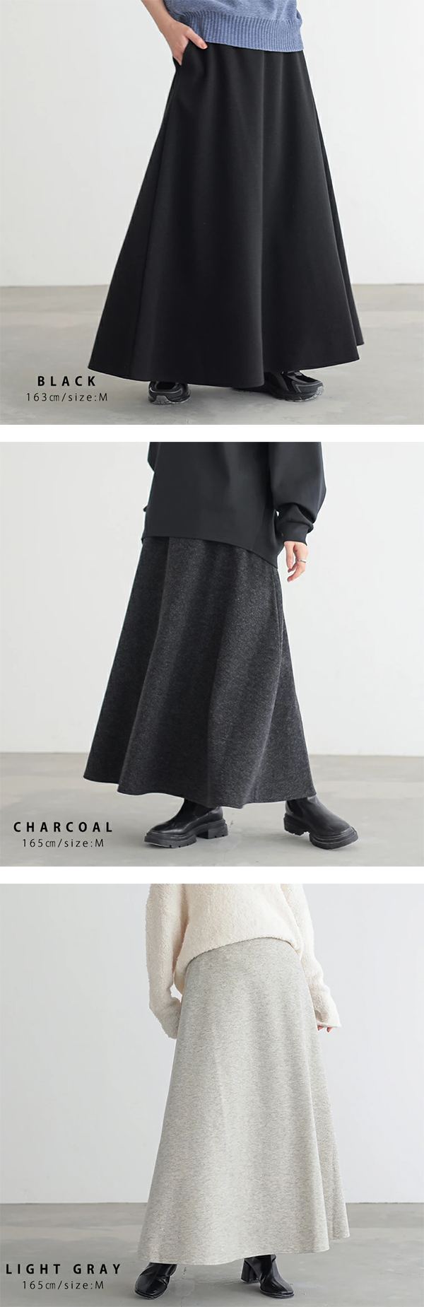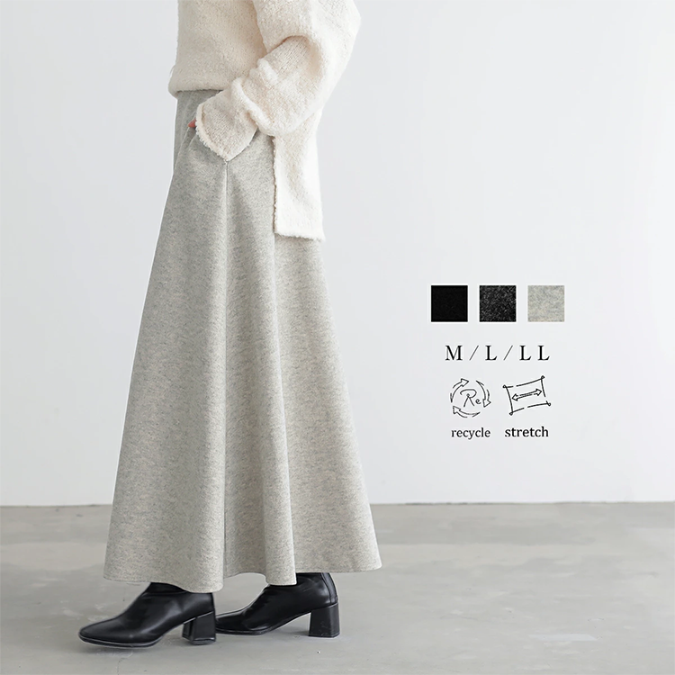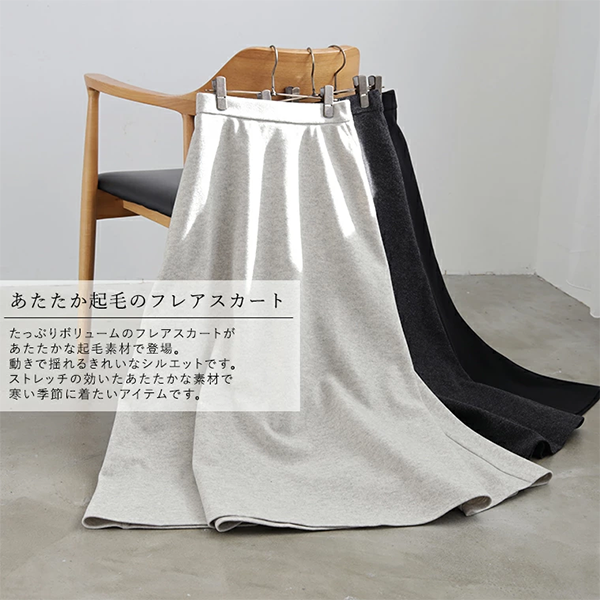 【最大20%OFFクーポン 19日9:59迄】あたたか 起毛 フレアスカート レディース ボリューム ロング丈 ロングスカート ストレッチ 伸縮性 ポケット付き リサイクルポリエステル エコ ベーシック 25A/W 秋 冬 M L 洗濯可 for/c フォーシー