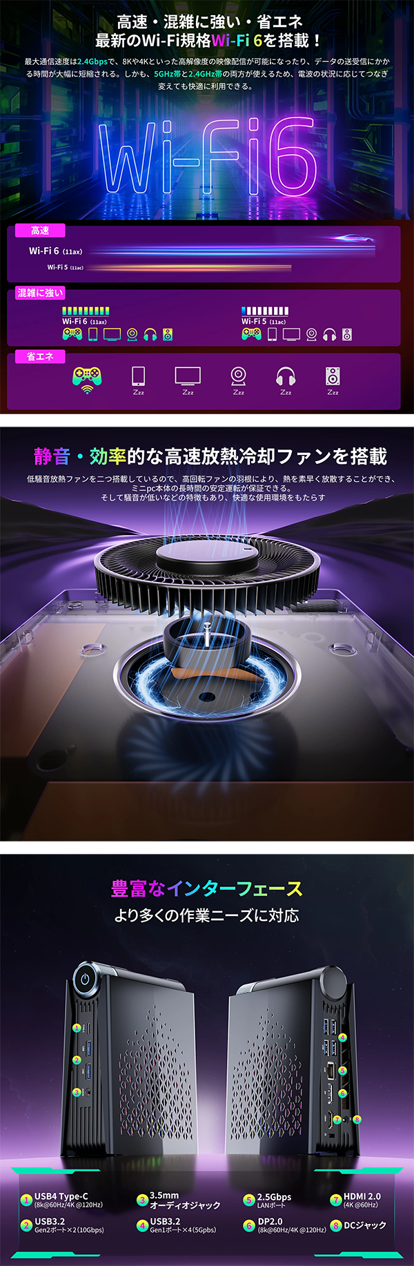 • 接続性 Wi-Fi 6、Bluetooth 5.2、2.5G LANポート